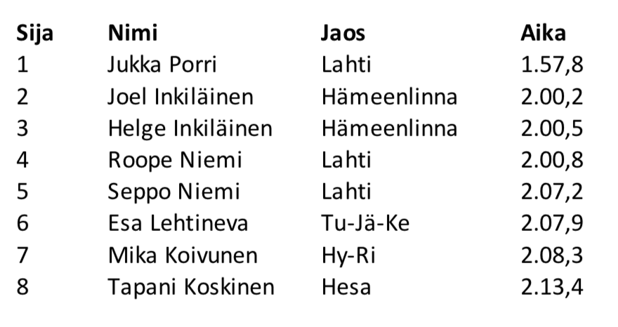 Jääratakisan 2019 tulokset